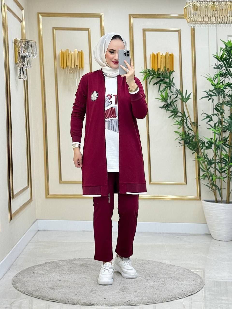 بدلة رياضية تتكون من 3 قطع أنيقة ومريحة للرياضة والخرجات مستوردة من تركيا نوع الثوب قطن ممتاز